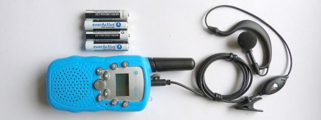 Dziecięce Walkie-Talkie PMR (16 kanałow, 99 kodów CTCSS, AAA) z dodatkową słuchawką PTT.